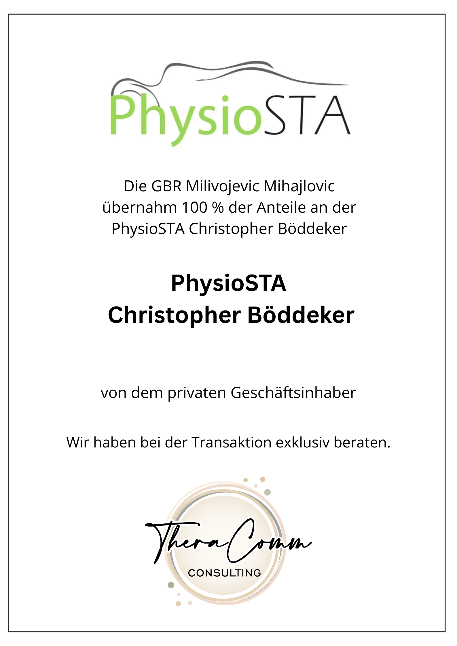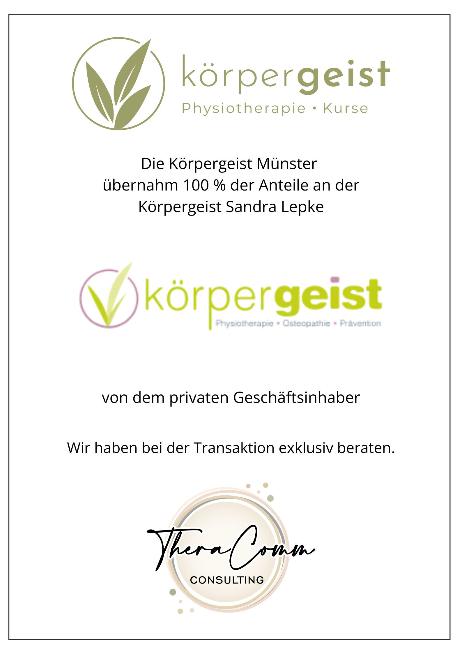 „Die Suche nach einem geeigneten Nachfolger für meine Praxis war für mich ein emotionaler und herausfordernder Prozess. Dank Herrn Günther konnte ich jedoch entspannt und mit einem guten Gefühl loslassen. Es wurden nicht nur die passenden Kandidaten gefunden, sondern auch den gesamten Übergabeprozess von Anfang bis Ende professionell begleitet. Ich hätte mir keine bessere Unterstützung wünschen können.“